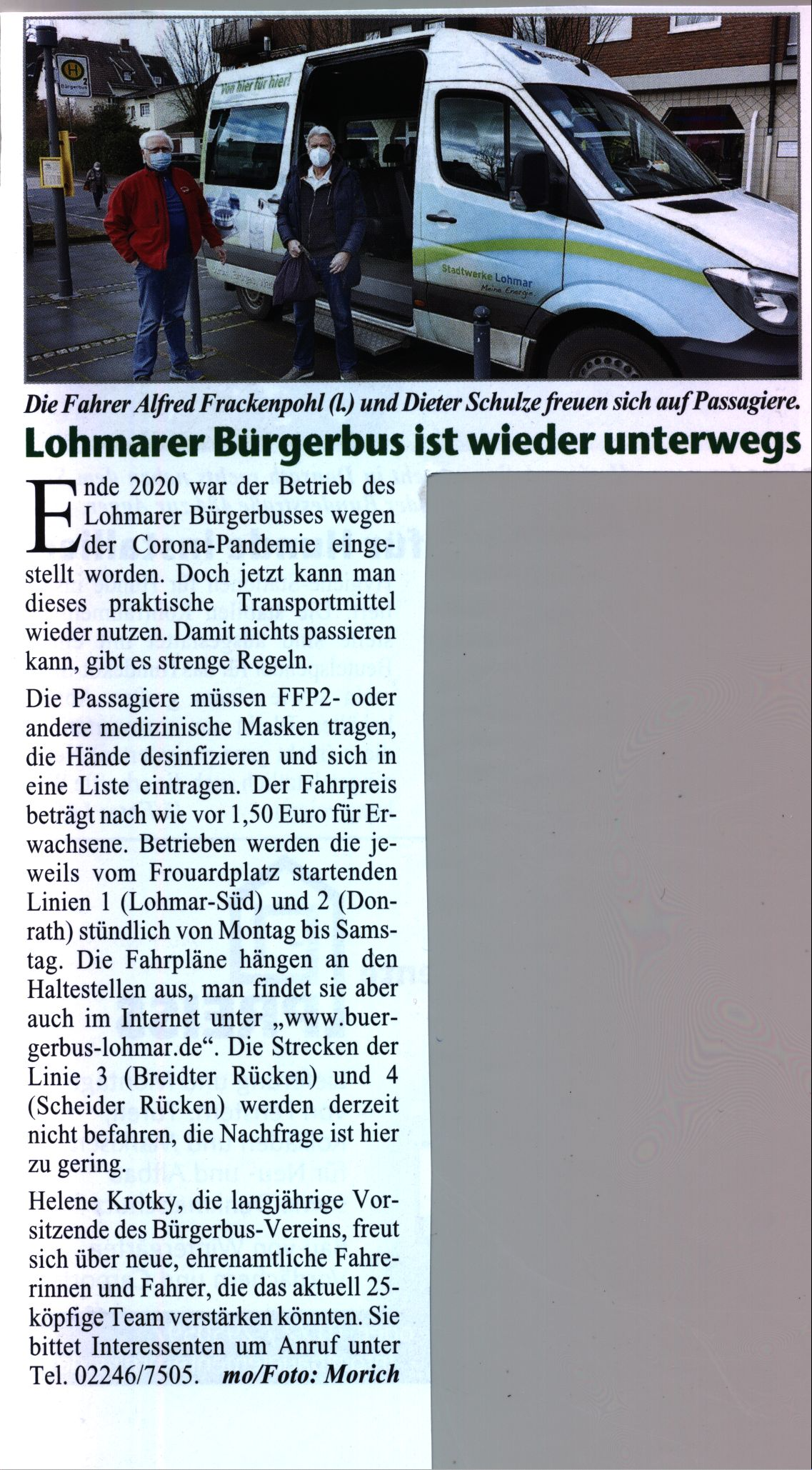 Wer glaubt, dass das eine neue Linie des Lohmarer Bürgerbusses ist, wird leider enttäuscht.